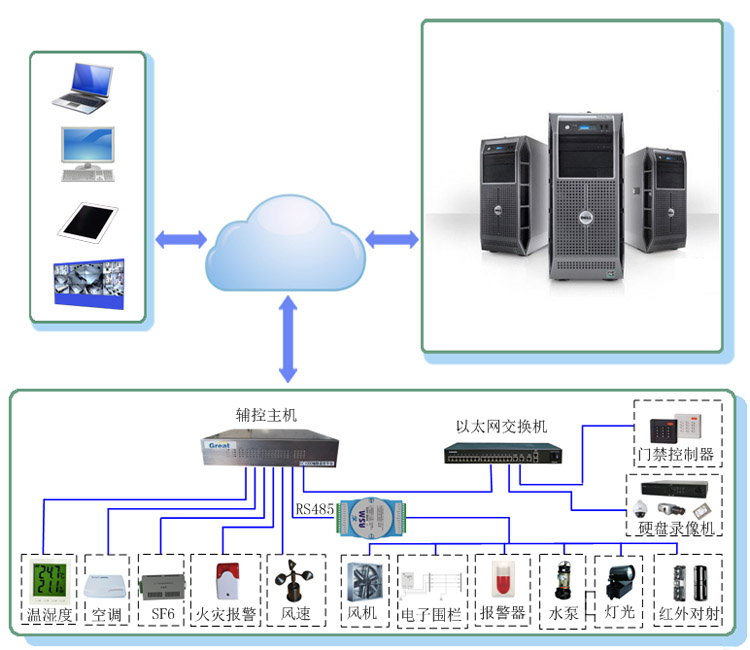 本系統(tǒng)通過對各種輔助生產(chǎn)系統(tǒng)的整合、優(yōu)化,并通過監(jiān)測、預(yù)警和控制三種手段,實(shí)現(xiàn)智能變電站無人值守下的分布式遠(yuǎn)程監(jiān)管,為變電站的科學(xué)管理和安全生產(chǎn)提供可靠的技術(shù)保障。